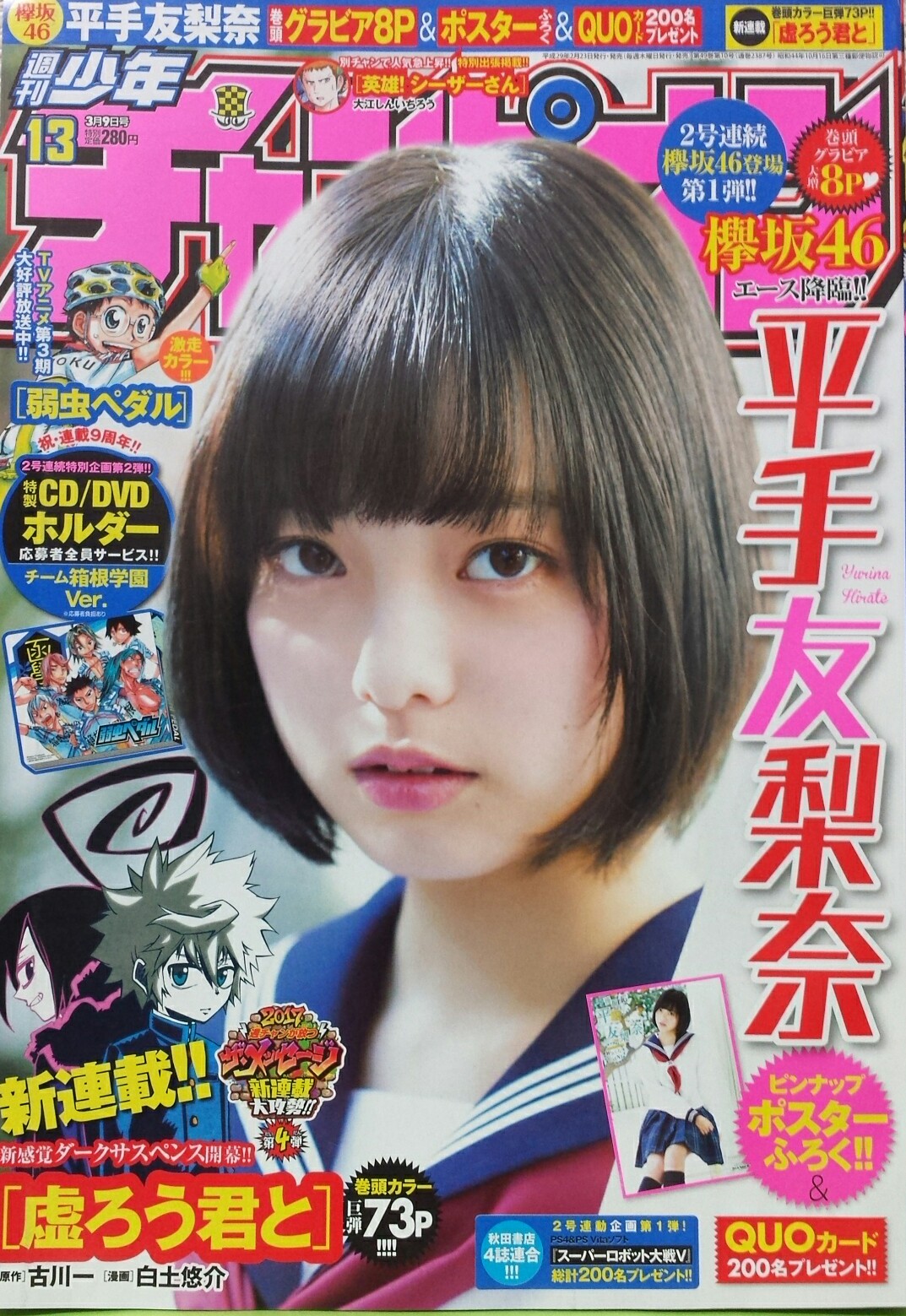本日2月23日(木)発売の「週刊少年チャンピオン」の表紙&巻頭グラビアを平手友梨奈が務めさせて頂いております✨