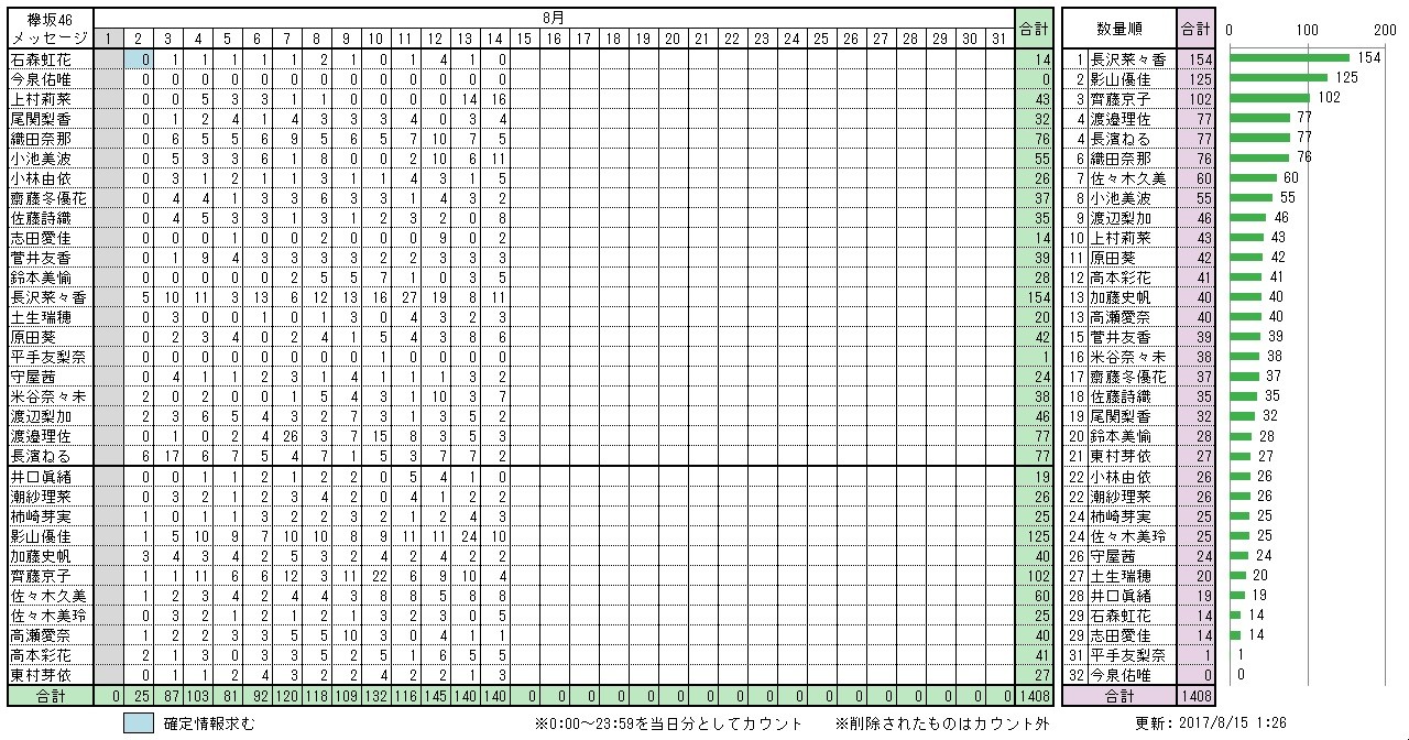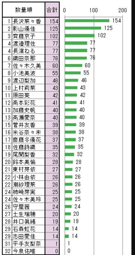 【欅坂46】意外なメンバーも上位に!メッセージ送信数をグラフにした結果wwww