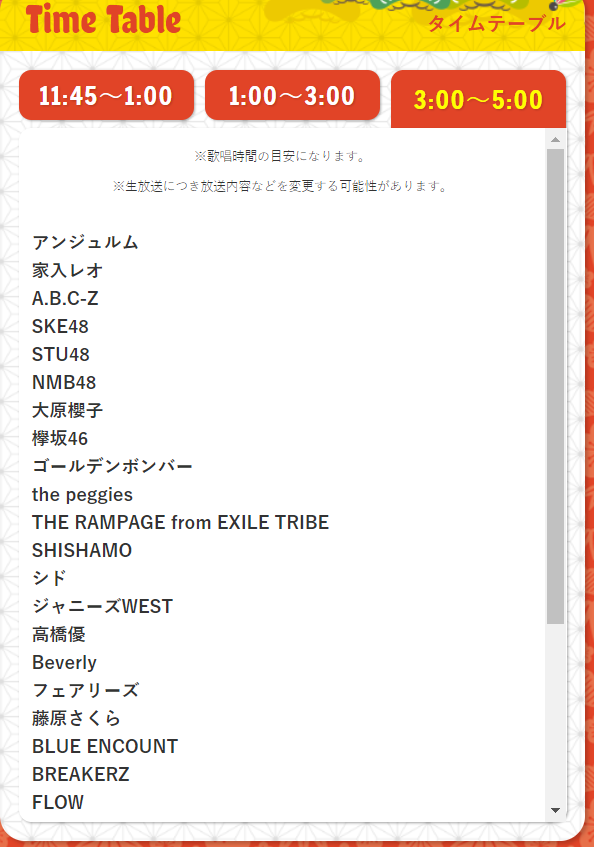 去年の1:00~3:00がちょうど良かった