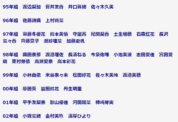 98年組 織田奈那 渡邉理佐 長濱ねる 今泉佑唯 小池美波 志田愛佳 宮田愛萌 東村芽依 高瀬愛奈 高本彩花