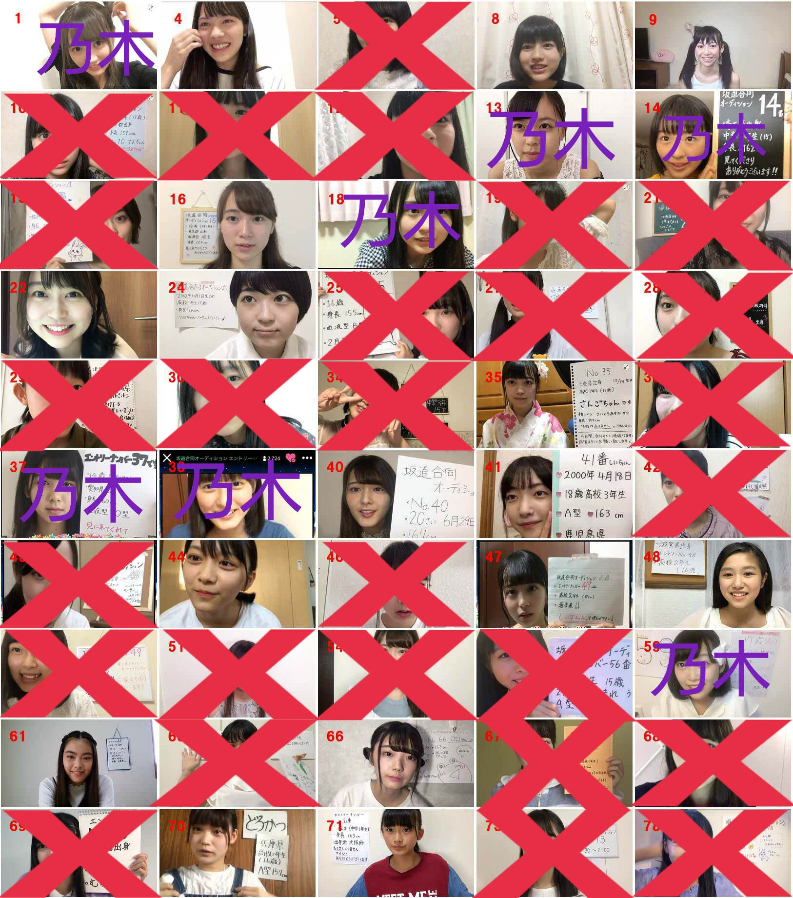 16、24、40、41、44、48、61いれば71が欅と予想
