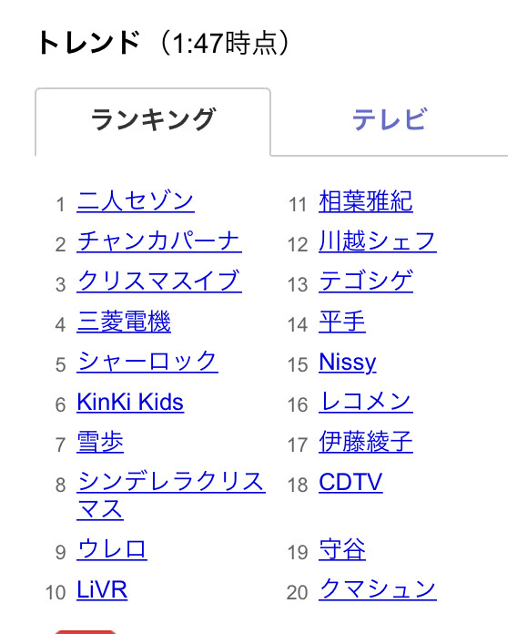 二人セゾントレンド4位まで来てるやん