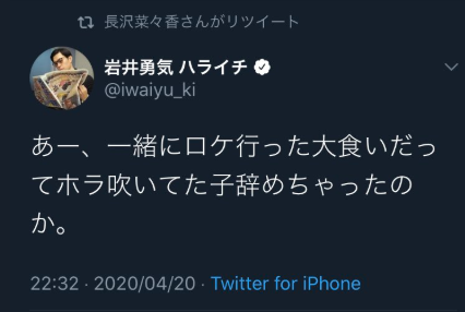 — 岩井勇気 ハライチ (@iwaiyu_ki) 2020年4月20日