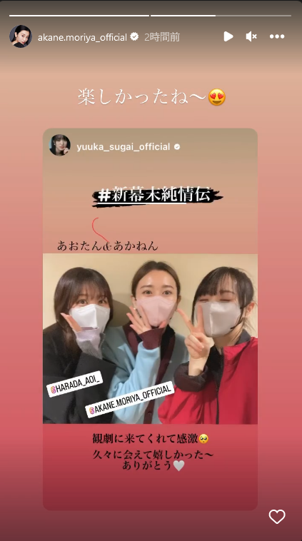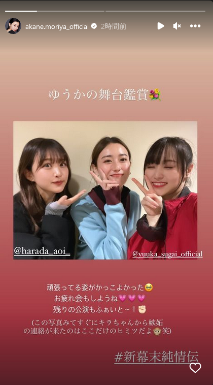 あかねん&葵ちゃん、ゆっかーの『新幕末純情伝』一緒に観に行ったんだ!😭😭😭