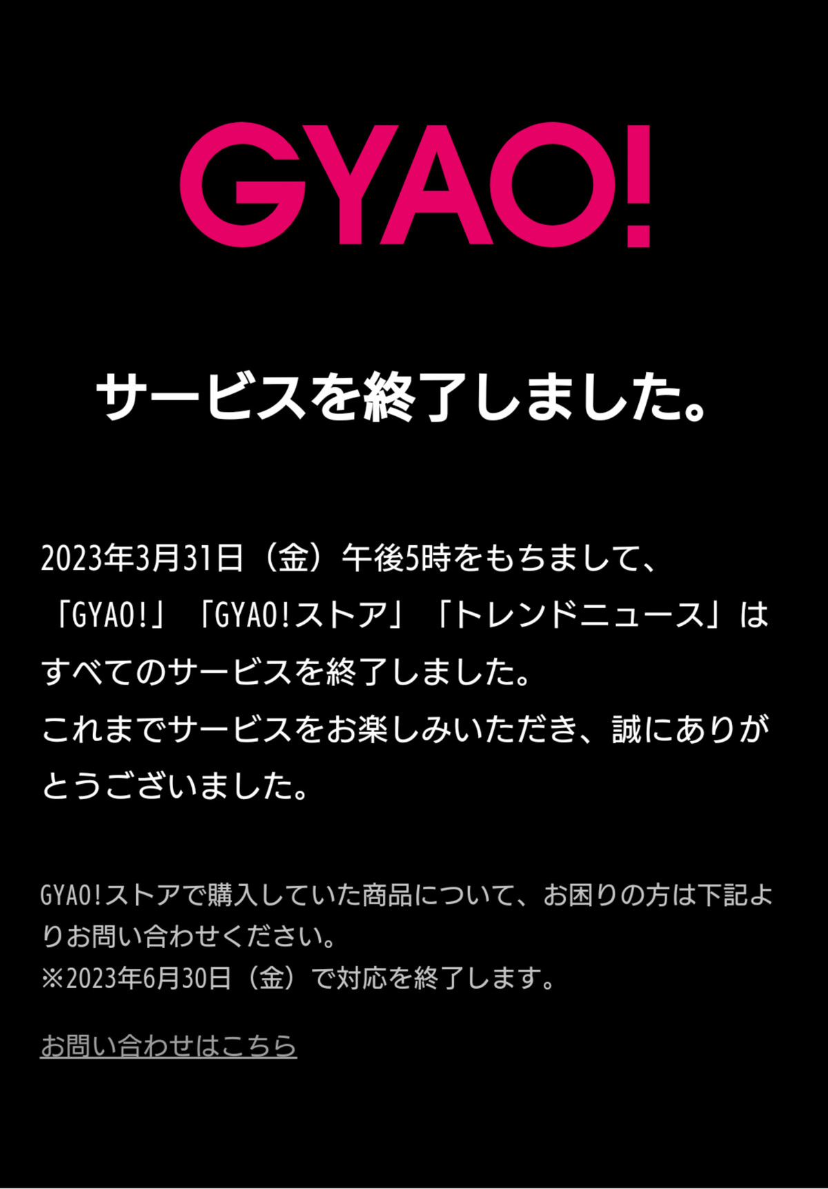 これまで長い間GYAO!をご利用いただき、本当にありがとうございました。