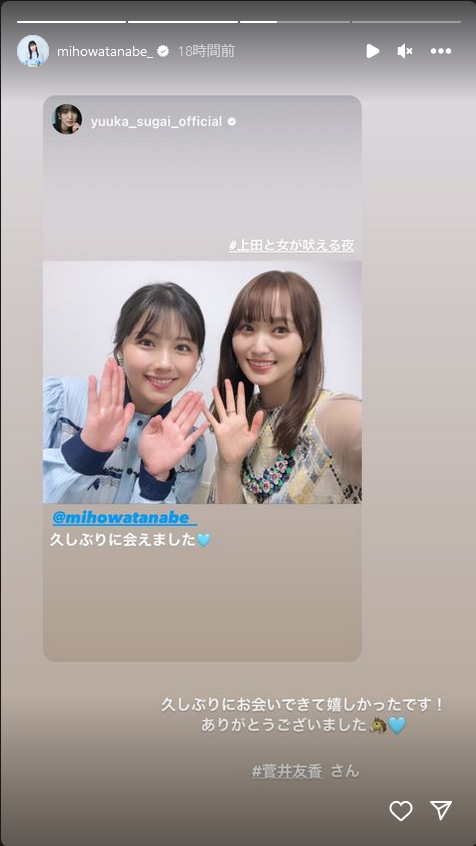 まさかの共演でしたな✨#yuukastagram #菅井友香 #渡邉美穂 pic.twitter.com/uAWkgQFhka