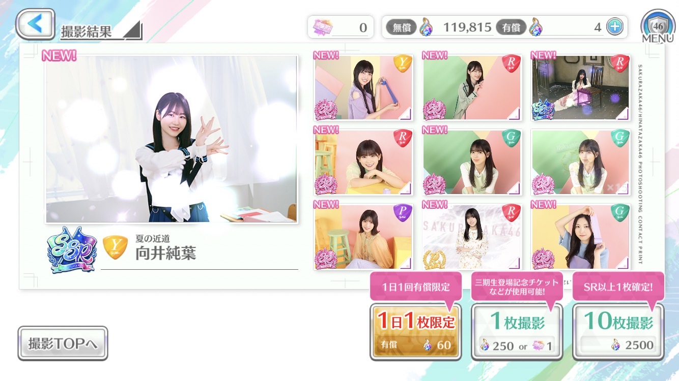 10連でカットイン来てwktkしてたら菅井様来て笑ってしまいましたわ☺