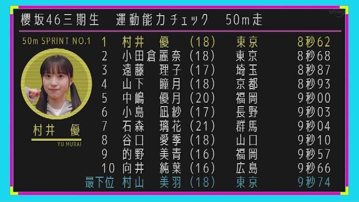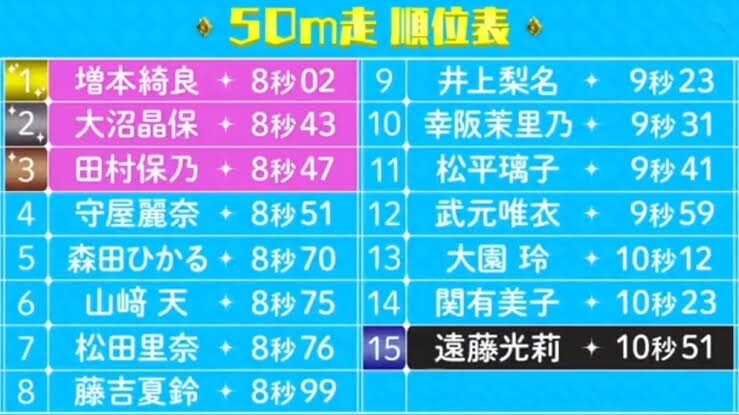 そこさくでは、あかねん卒業してゆいぽんの記録7.91が確か1位だったはずなのに番組ではフライング気味のキラちゃんの次になってるw
