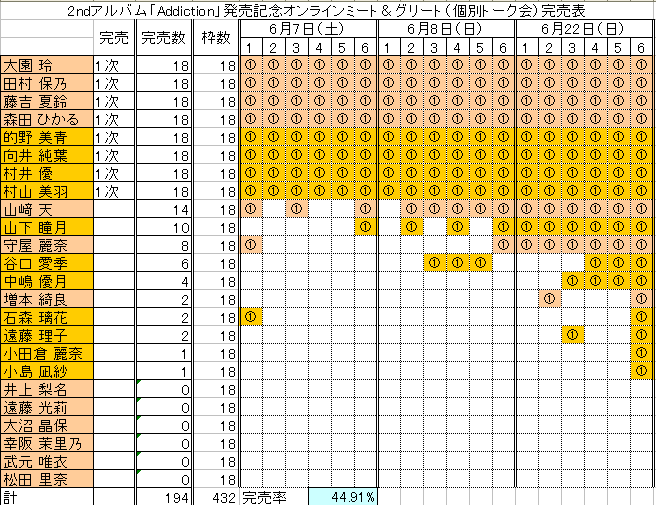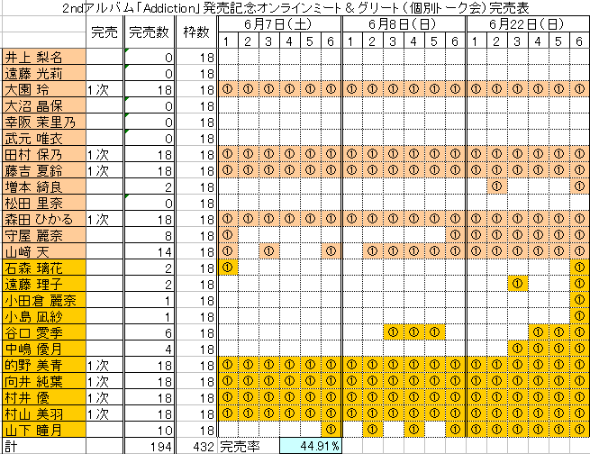 2ndアルバム「Addiction」発売記念オンラインミート&グリート(個別トーク会)1次完売表
