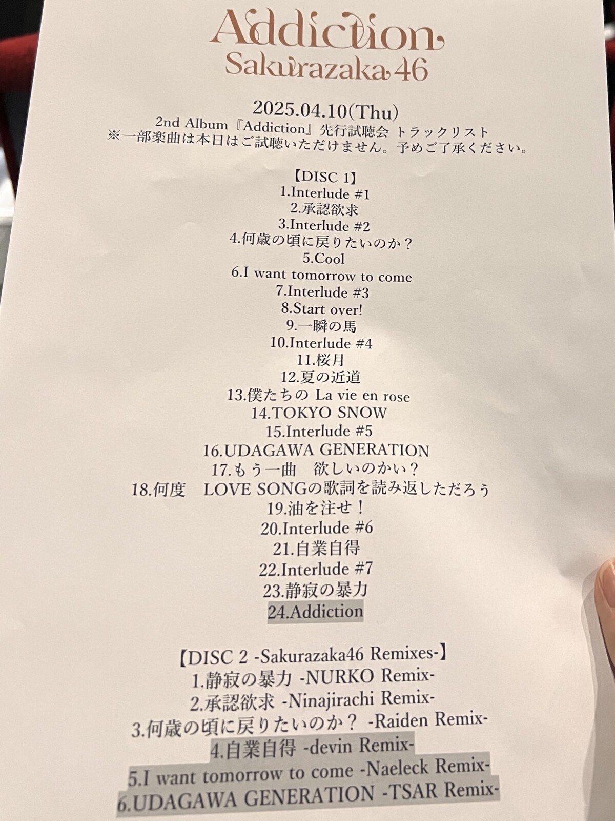 上に曲リスト上げてるXのあるけど黒線引かれてるのが今日聴けない楽曲やろ多分