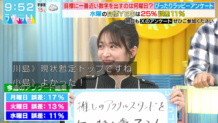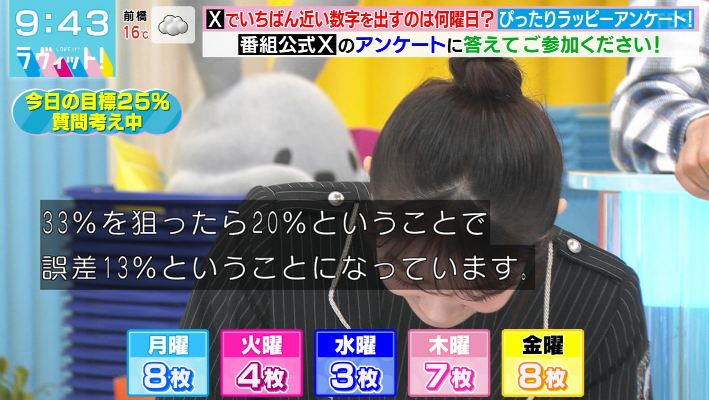こんなぎのアンケートかなり良さそう。下側に外すぶんには誤差25%以内になるしな。